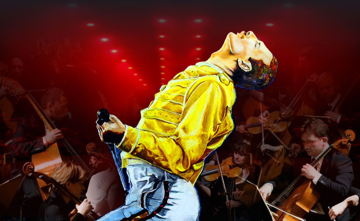 Музыка QUEEN оживает на сцене в полном аренном размахе: огненный вокал, мощные гитарные партии, живой драйв и симфонический оркестр, который делает каждую композицию ещё величественнее.